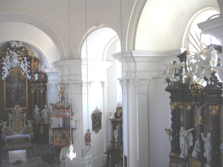 Durch die Renovierung (Ausmalen in Weiß, einheitlich heller Steinboden für den Altarboden) ist der Raum noch vornehmer, in seinen vollkommenen Proportionen deutlicher.