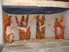 Weitere Seitenfiguren sind links der hl. Apostel Judas Thaddäus, mit seinem häufigsten Attribut, der Keule, und dem seit dem Ende des 18. Jahrhunderts zusätzlich hinzukommenden Attribut eines Porträtmedaillons mit Christi Zügen. Dieser Apostel, über dessen Leben eigentlich wenig bekannt ist und dessen Kult seit dem Ende des 19. Jahrhunderts intensiv beginnt, wird als Patron in besonders schweren und ausweglosen Anliegen angerufen.
