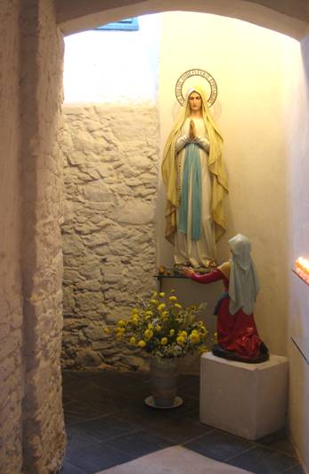Im Jahre 1915 stiftete das Geschwisterpaar Simon und Maria Temmel, vlg. Heintschi, das zwei Jahre später auch die Kosten für die Schaffung der beiden Sandsteinstatuen an der Kirchenfassade trug, für die Pfarrkirche eine Lourdes-Grotte mit Darstellungen der Muttergottes und der Bernadette Soubirou.