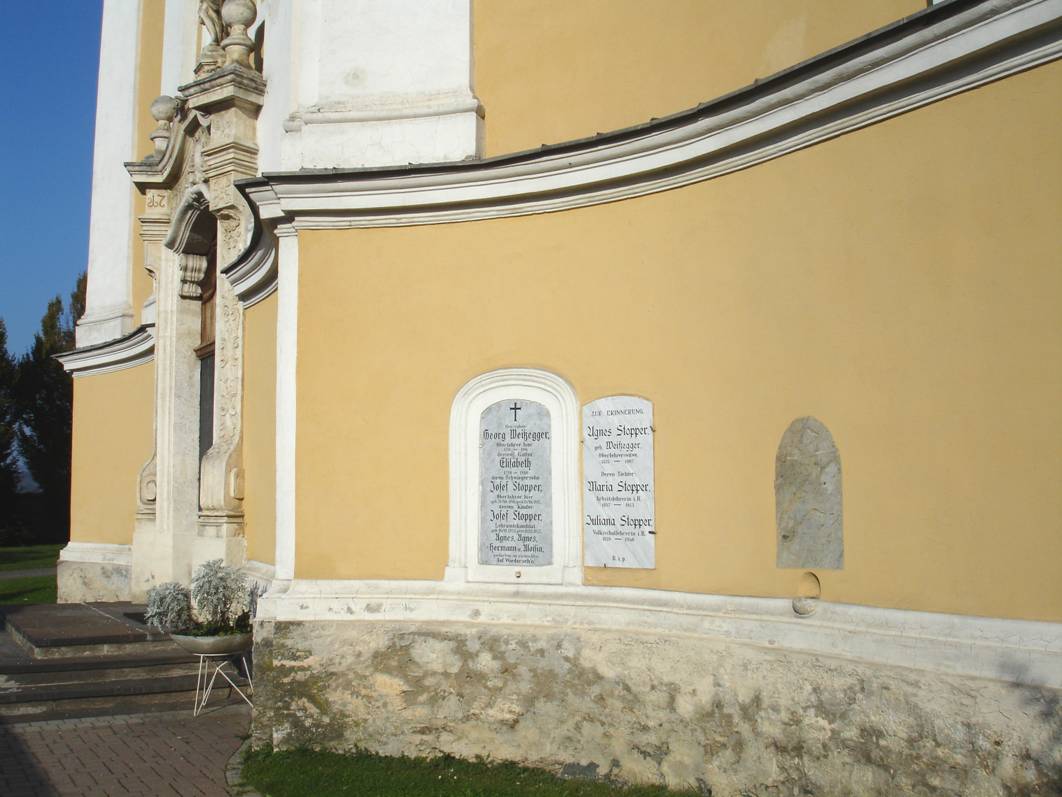Auf der linken Seite der der Frau Maria Eleonora von Pureib, geb. von Prandegg, welche 1702 im Alter von 36 Jahren gestorben ist mit folgender Inschrift: